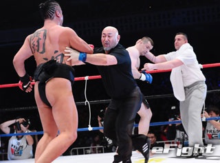 ミルコの腕十字にギブアップした後、襲い掛かろうとした鈴川
