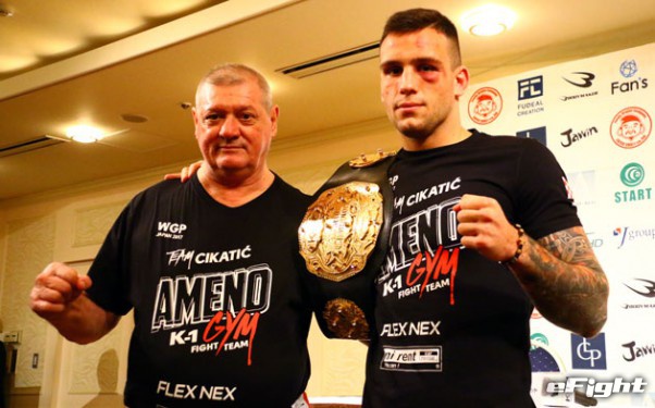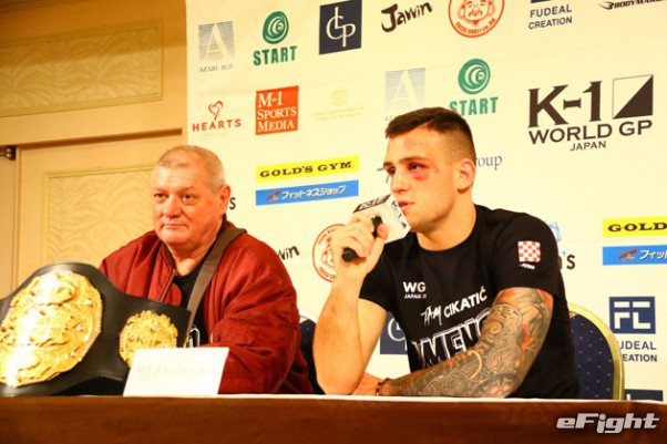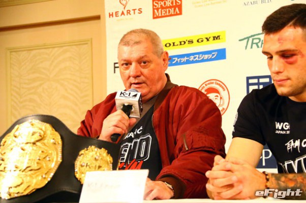 初参戦でトーナメントを制し、新生K-1の初代ヘビー級王者となったプラチバット(右)。左は師匠の初代K-1王者シカティック