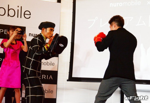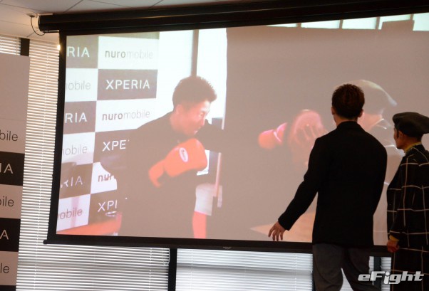パンチを打ち込んだ瞬間をスーパースローで確認する鶴太郎と井上