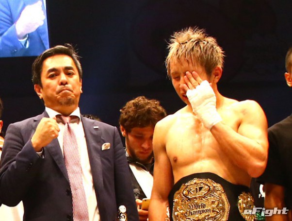 優勝に男泣きする久保の後ろで携帯電話をいじるバダザリアン