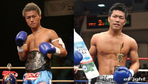 NJKF王座に続き2本目のベルトを狙う北野(左)と、NJKFスーパーライト級1位の畠山で王座決定戦
