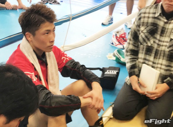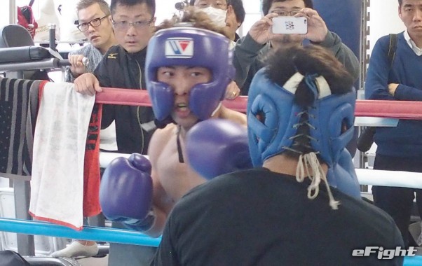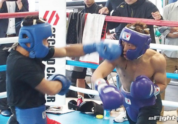 井上(右)のパンチが一瞬早くヒット。相手はパンチを出しながら後退