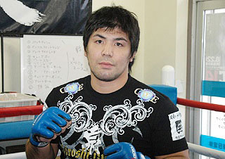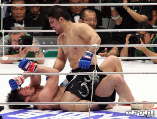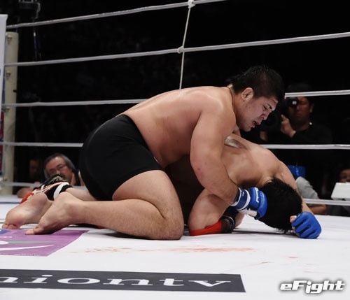 ミノワマンにパウンドを打ち込む泉