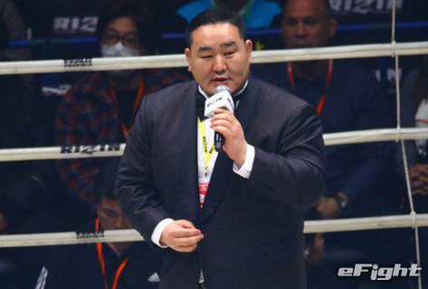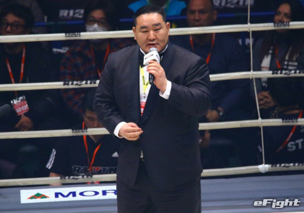 モンゴルチームのセコンドとして来場した朝青龍だが、自らの1000万円企画をちゃっかりアピールした
