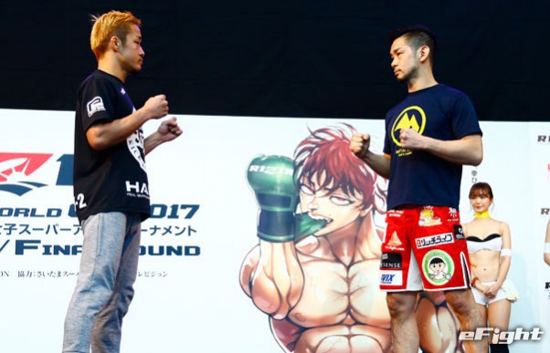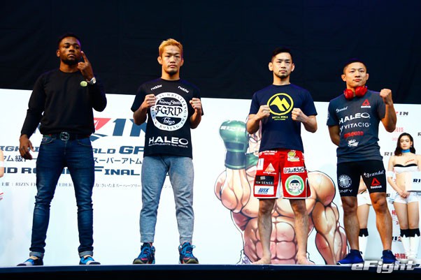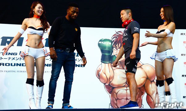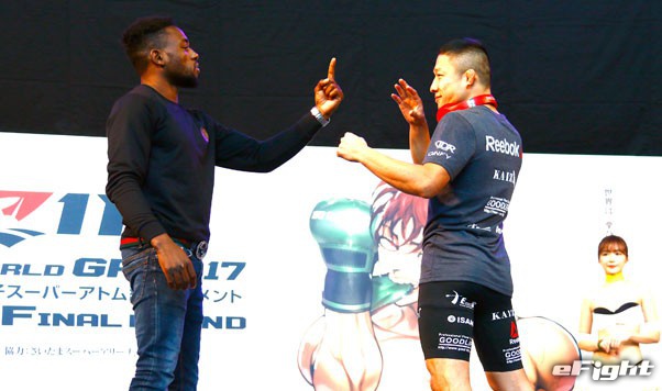 トークで挑発するケイプ(左)に、堀口は口をパクパクさせる手のゼスチャーで“お前は口だけ”と応戦
