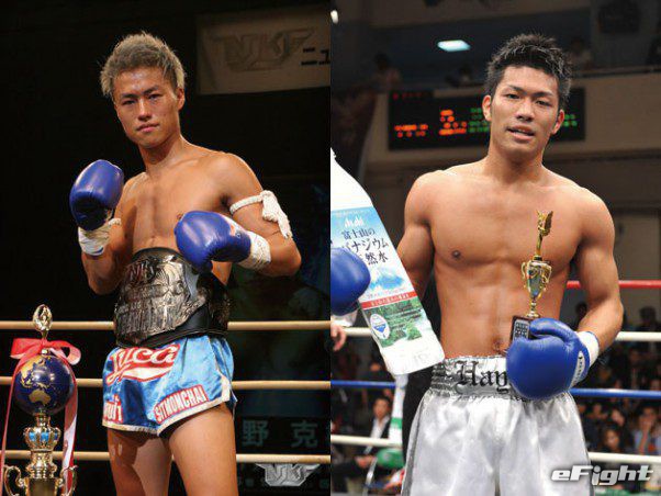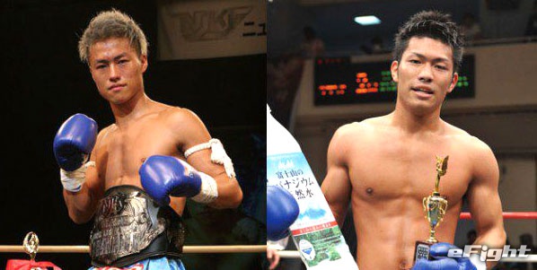 NJKF王座に続き2本目のベルトを狙う北野(左)と、NJKFスーパーライト級1位の畠山で王座決定戦