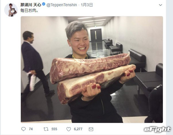 約20kgの高級牛を手にして嬉しそうな写真を自身のSNSにアップ。1週間、肉ざんまいが続いた