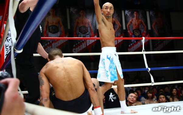 1Rに山内佑太郎の右顔面前蹴りをアゴに受け先制のダウンを奪われたピケオー