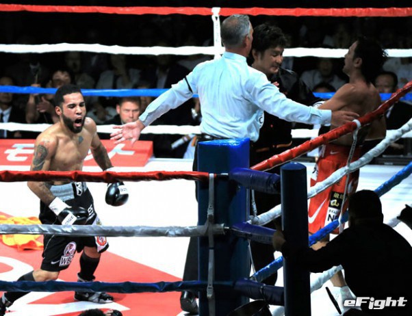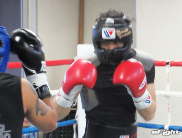 昨年8月のネリ戦で神の左を出す山中。2Rにはネリをグラつかせた。