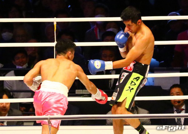 フエンテスが比嘉の右ボディストレートに顔を歪める。
