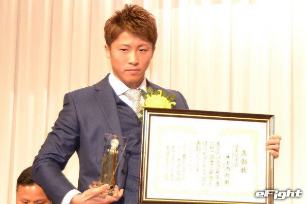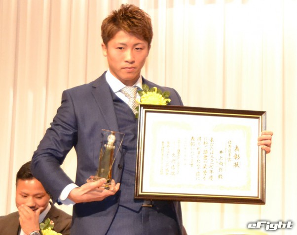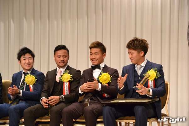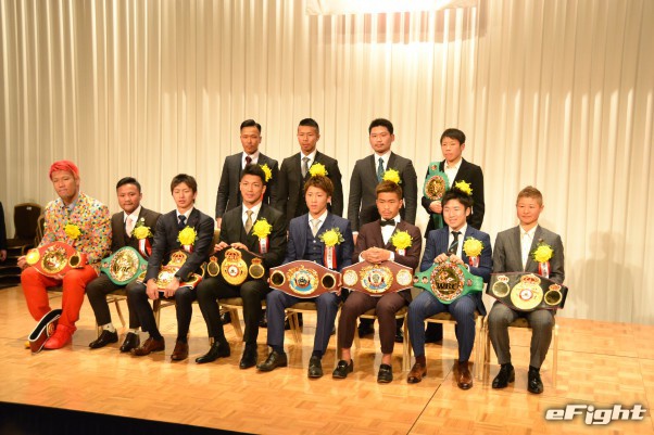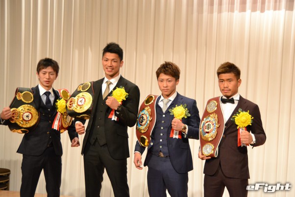 殊勲賞の田口良一(左)、MVPの村田諒太(左から2人目)らと