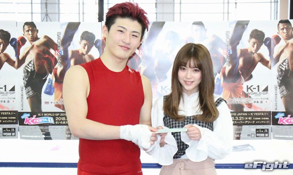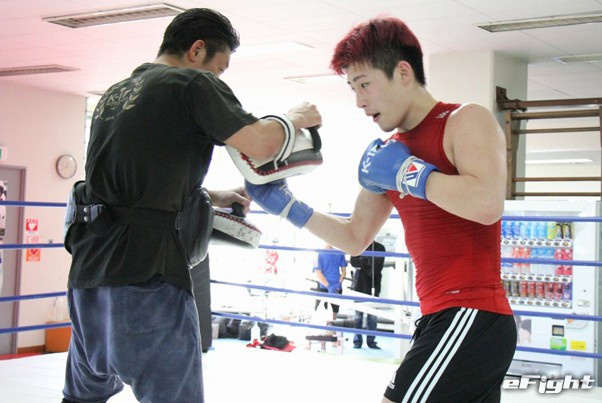 彼女が見守る中、気合いの入ったミット打ちを披露