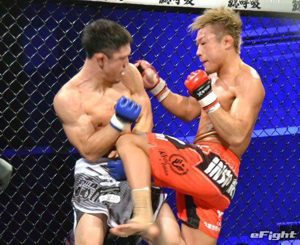 昨年12月大会で松嶋(左)は、ISAOが敗北したカイル・アグオン(右)に判定勝ち