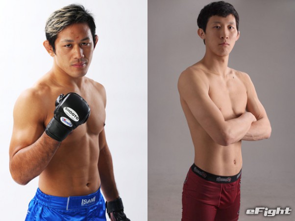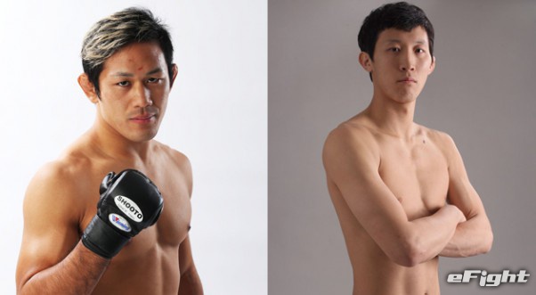 修斗環太平洋ライト級王者・川名雄生(左)が韓国のジン・テホ(右)と対戦
