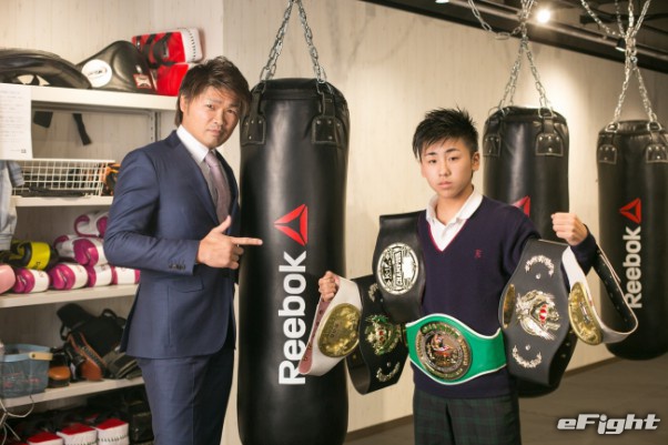 STYLE高等学院在学中にK-1甲子園優勝を目指す野田蒼(右)と池本誠知学院長(左)