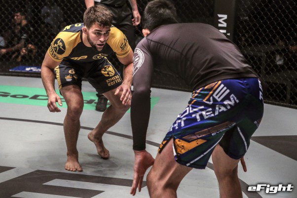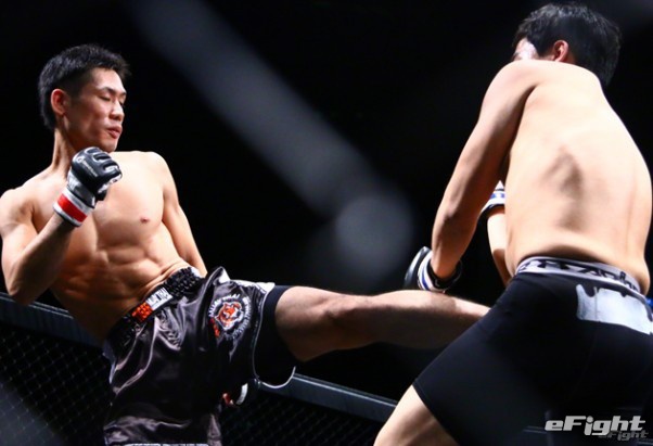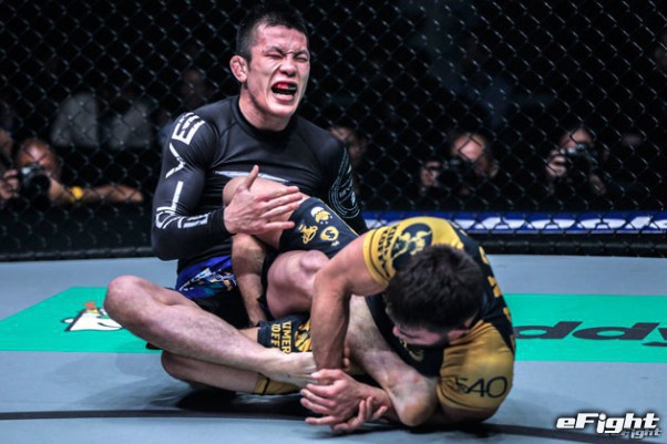 青木真也をヒールホールドでタップ(ギブアップの意思表示)させるトノン