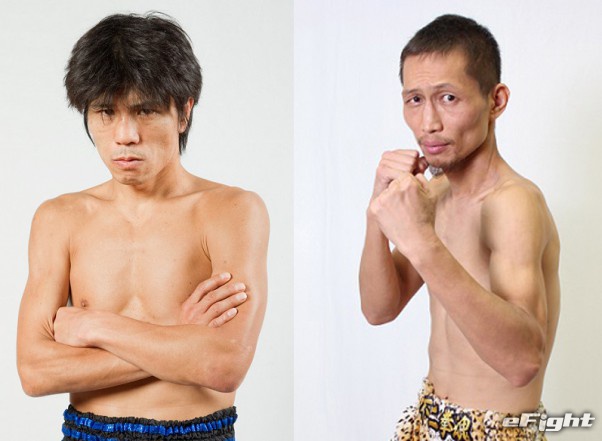 "キックのレジェンド"立嶋(左)が96戦目を迎え、パンチャーの半澤(左)と激突