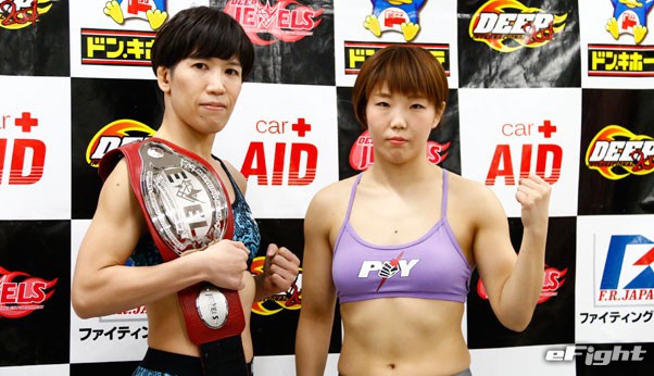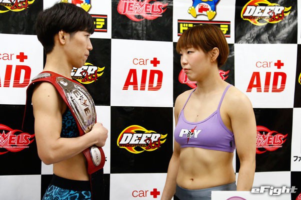 メインのタイトルマッチで激突する王者・黒部(左)と挑戦者SARAMI(右)
