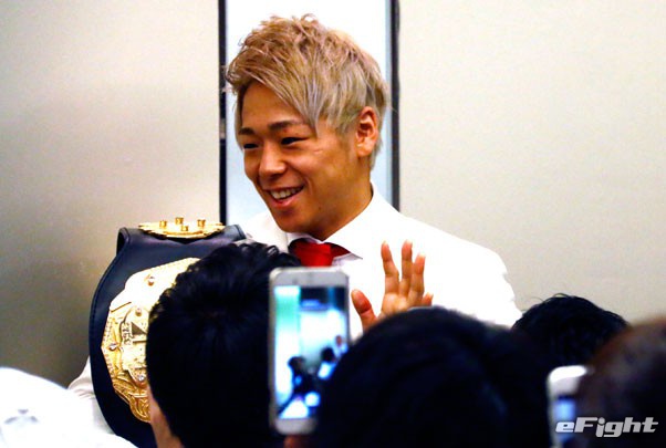 一夜明け会見に集まったファンに笑顔を見せる武尊