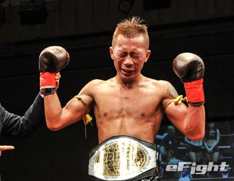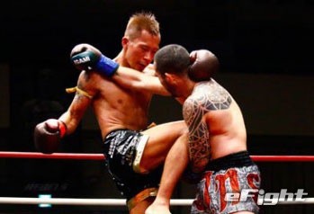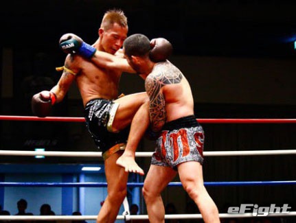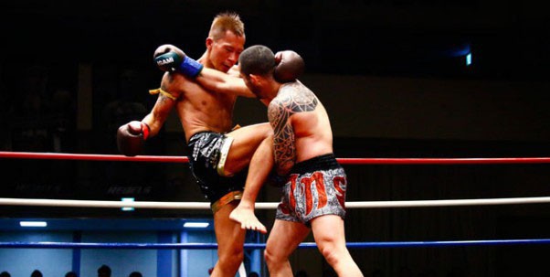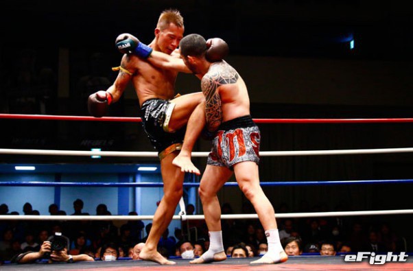 昨年11月の王座決定戦で、ヒザ蹴りを突き刺す良太郎(左)