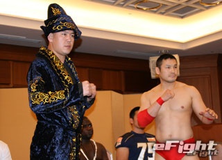 バンナと対戦するラーハン(左)は2015年に巌流島参戦のため来日。トーナメントでミノワマン(右)を破った