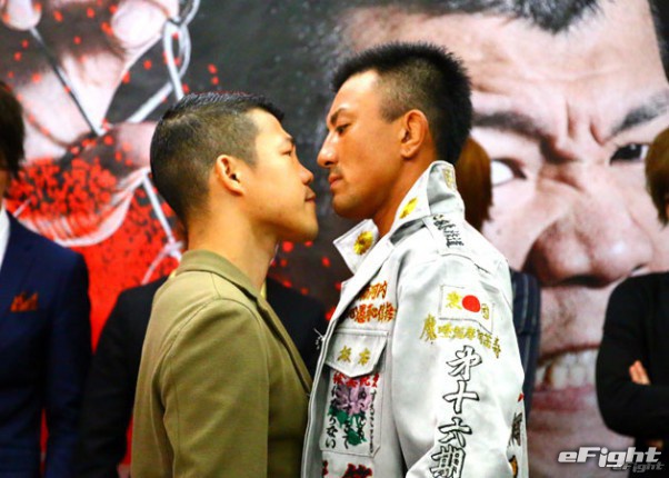 昨年5月、ABEMA「亀田に勝ったら1000万円」の調印式で睨み合う亀田興毅と暴走族総長