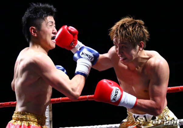昨年、現K-1ウェルター級王者・久保優太(右)と引き分けている山際