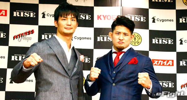 松倉(左)は元RISEミドル級王者の森田(右)と対戦