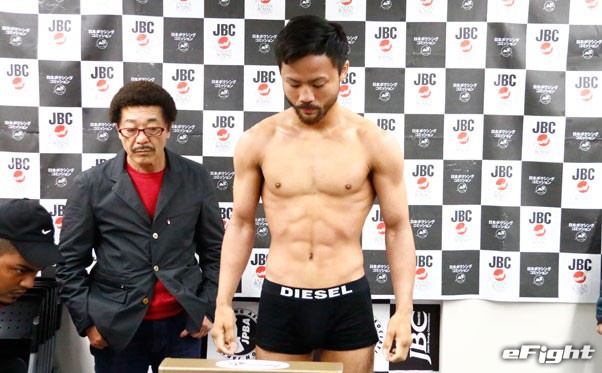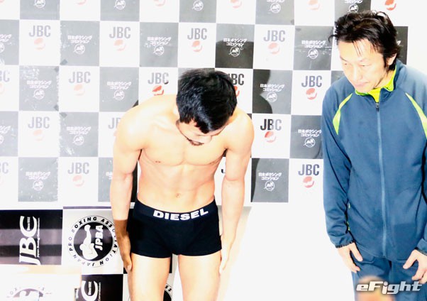 計量を終えて頭を下げる比嘉