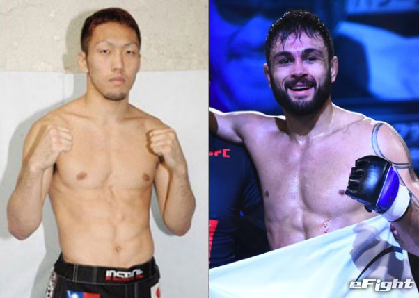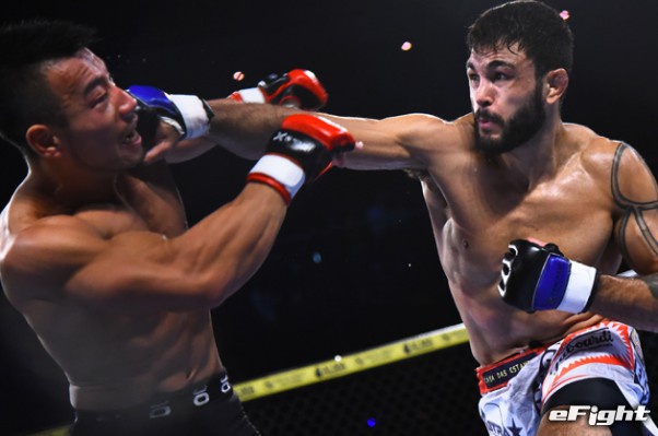 ハードパンチャーの手塚(左)から右ストレートでダウンを奪ったフランサ