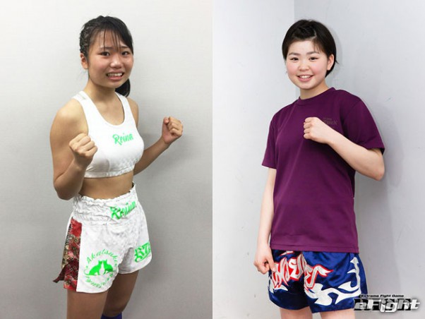 今春、高校に進学してプロデビュー戦を迎える那須川梨々(右)の対戦相手は、今春高校を卒業したばかりの佐藤レイナ(左)