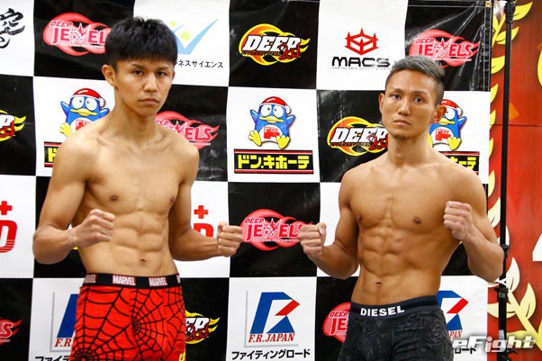 かつてKrushで対戦した堀尾(左)と結城(右)が、ケージの中でのキックルールで再戦する異色のカード