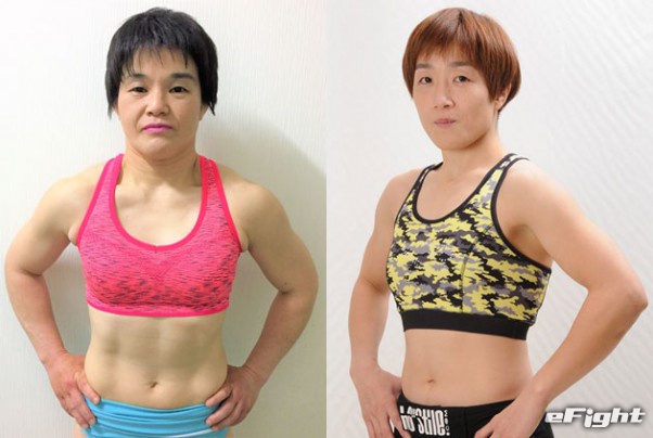 杉山(左)が約半年ぶりとなる再起戦。対するは筋骨隆々のアラフォー女子・藤森(右)
