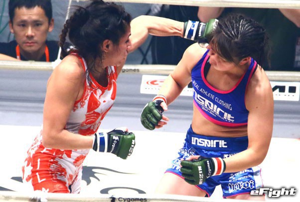 2016年12月、RIZIN初参戦では浅倉カンナ(右)を破っているガルシア(左)