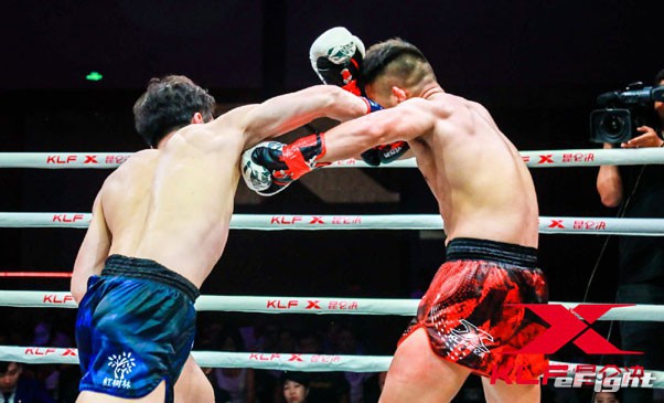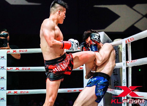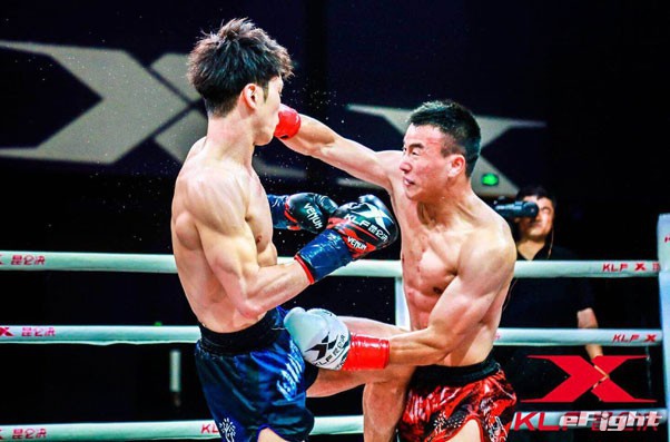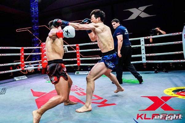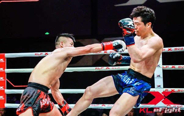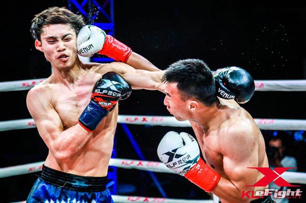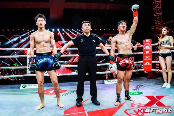 ローをコツコツと蹴っていった健太(右)だが、インパクト不足か判定に響かず、ウェイ(左)の軍門に下った