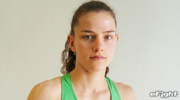 3月の「K’FESTA.1」に唯一の女子選手として出場したKANA(左)は、ロシアのポリナ・ペトゥホーヴァに完勝