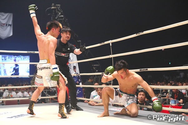 試合は那須川が合計4度のダウンを奪ってTKO勝ち