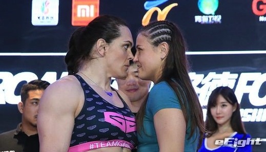 契約体重を大幅にオーバーしたギャビ(左)に対し、激怒する神取忍(右)