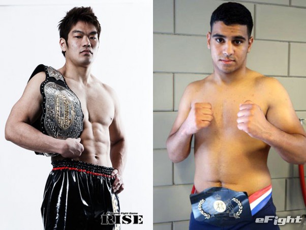 KOを量産するRISEヘビー級王者・清水(左)の相手は、オランダ王者フェルダオス(右)