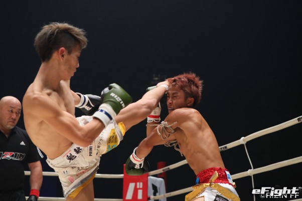 3月のRISEで無敗の金子梓と打ち合う瀧谷。強豪若手との連戦が続く