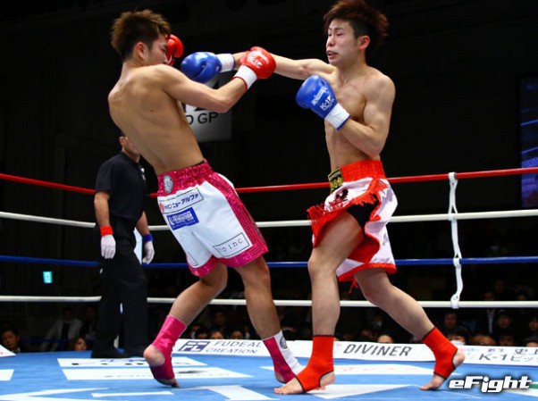 Krushフェザー級王者・西京春馬(左)にも昨年12月のK-1で勝利している椿原