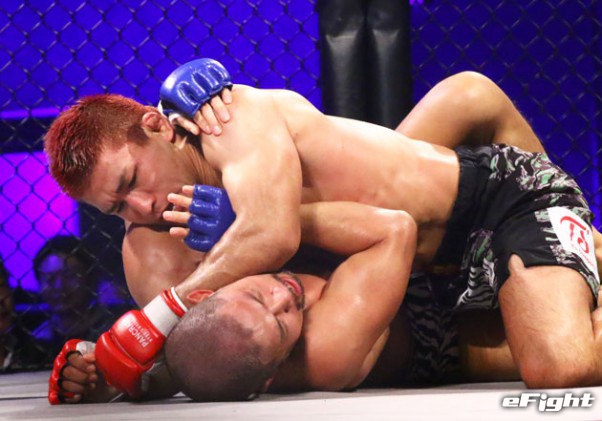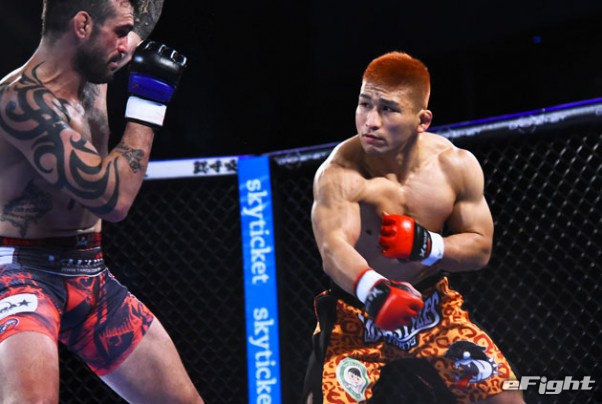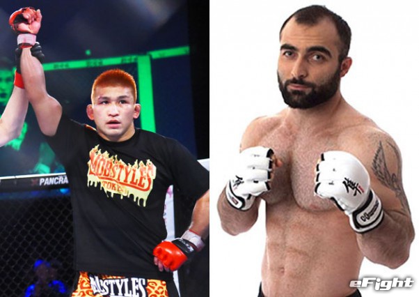 アキラ(左)が”ロシアンパワー”バティロフ(右)を迎え撃つ