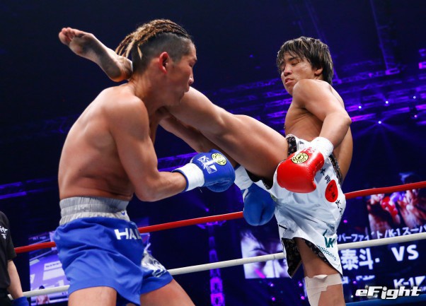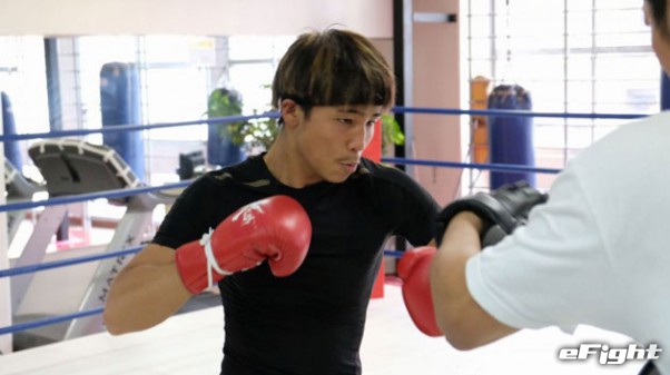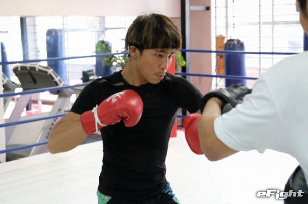 パンチも強いが、この空手仕込みの顔面前蹴りも武器としている軍司(右)