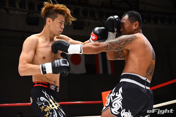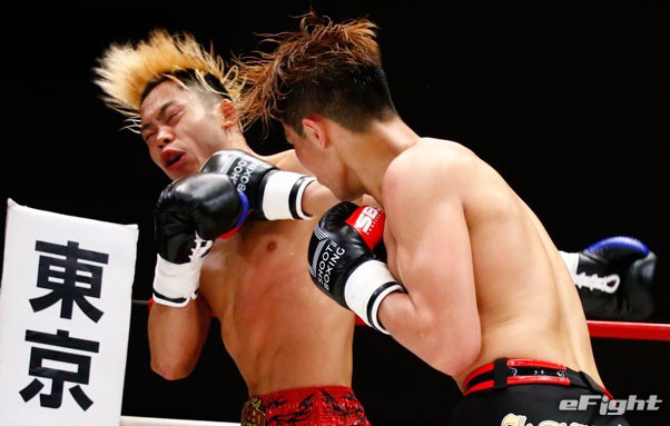 KNOCK OUTの初代スーパーライト級トーナメントで決勝に進出している不可思(左)にもTKO勝ちしている