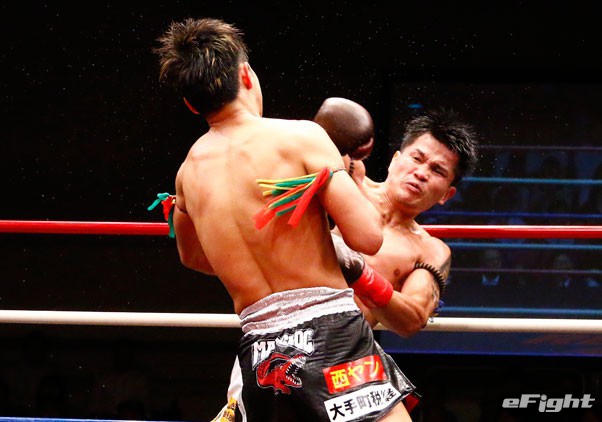 わざと下がって杉本が連打を繰り出してきたところへカウンターを放ったスアレック