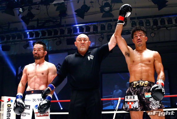 異色の対決として話題となった菊野(左)vsT-98(右)の一戦は、T-98の勝利となった