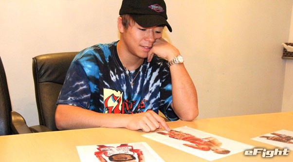 トーナメント出場選手たちの写真を前に、優勝予想をする武尊