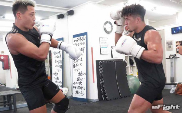 TRY HARD GYMで弟の大雅(左)とスパーリングをするHIROYA