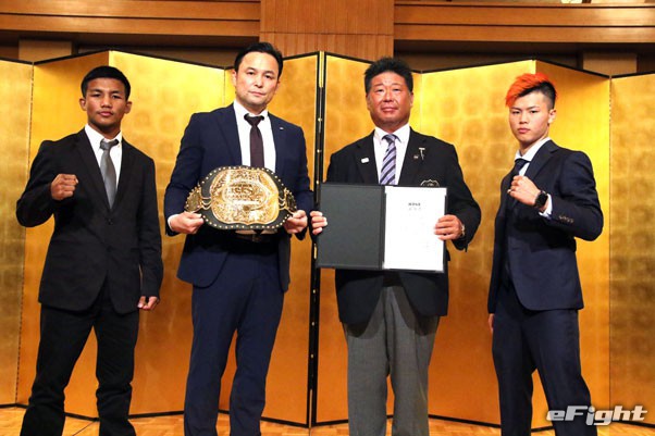 初お披露目されたRISE世界王座のベルト。このベルトを初めて巻くのは那須川か、ロッタンか