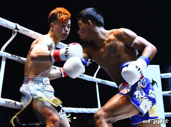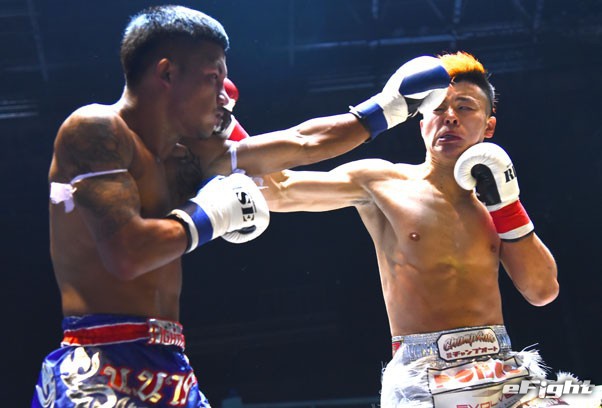 那須川(右)を追い詰めたロッタン(左)。早くも再来日を待ち望む声が多く上がった